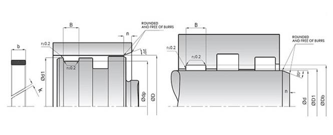 Bague de guidage standard pour application à tige et piston. La majorité des applications nécessitent une version séparée pour l’installation dans un boîtier fermé.