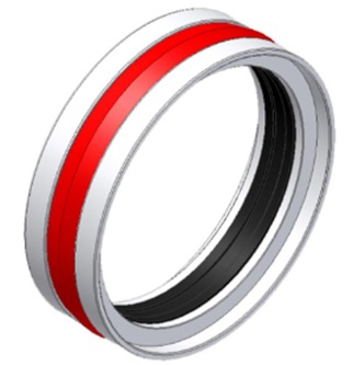 Joint de piston compact hydraulique à double effet, à anneau profilé, avec éléments de guidage intégrés. excellente capacité d’étanchéité statique.
