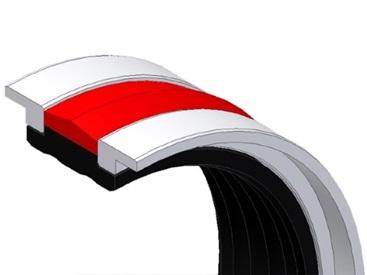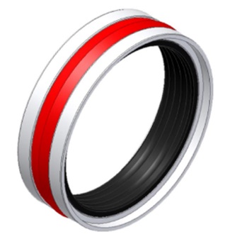 Joint de piston compact hydraulique à double effet, à anneau profilé, avec éléments de guidage intégrés. Excellente capacité d’étanchéité statique.