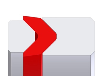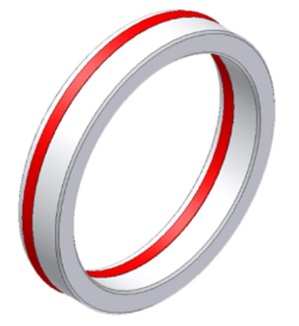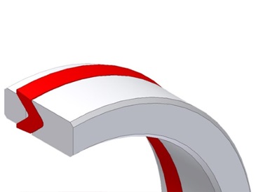 Hydraulique à simple effet. Ensemble d’étanchéité à chevrons, combinaison par bague de compression, bague en V, bague de support, en montage dos à dos avec un chevron intermédiaire pour l’activation de la pression double face, dans les applications à simple effet avec plus de chevrons intermédiaires possibles, pour l’hydraulique de l’industrie lourde.