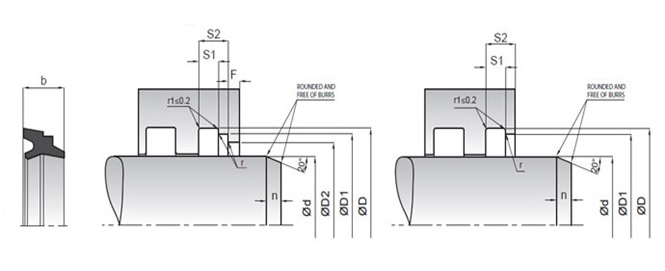 Joint racleur hydraulique et pneumatique à double effet. Combinaison généralement utilisée avec des joints en PTFE pour la conception de boîtier basée sur ISO6195-C.